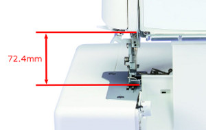 Duża przestrzeń robocza nad płytką ściegową (aż 72,4 mm) to więcej miejsca dla swobodnego operowania materiałami podczas szycia. |