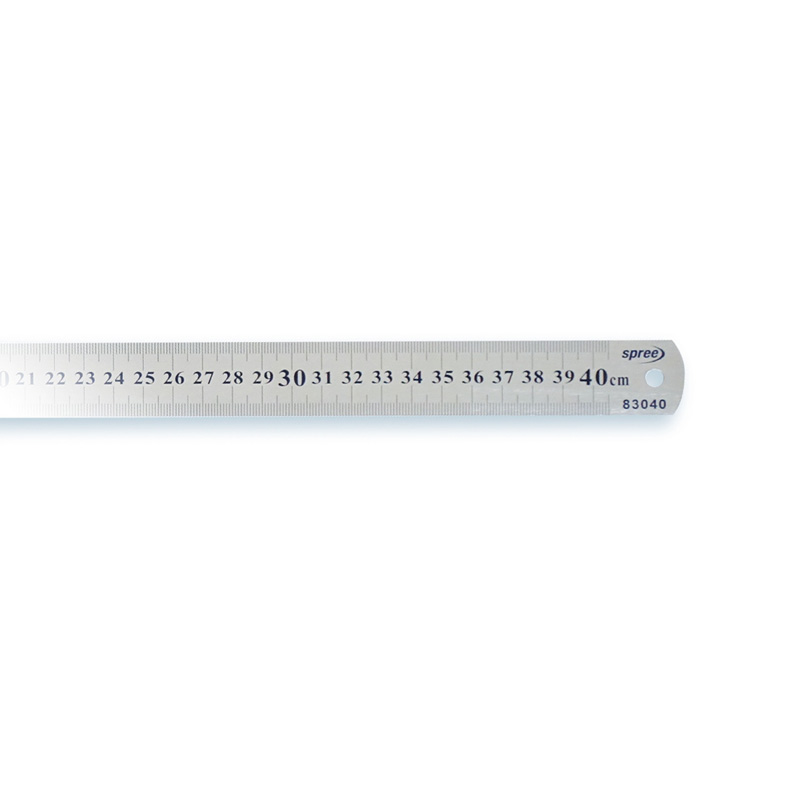 Klasyczne linijki, wykonane z trwałego metalu. Wyposażone w uchwyt do powieszenia.