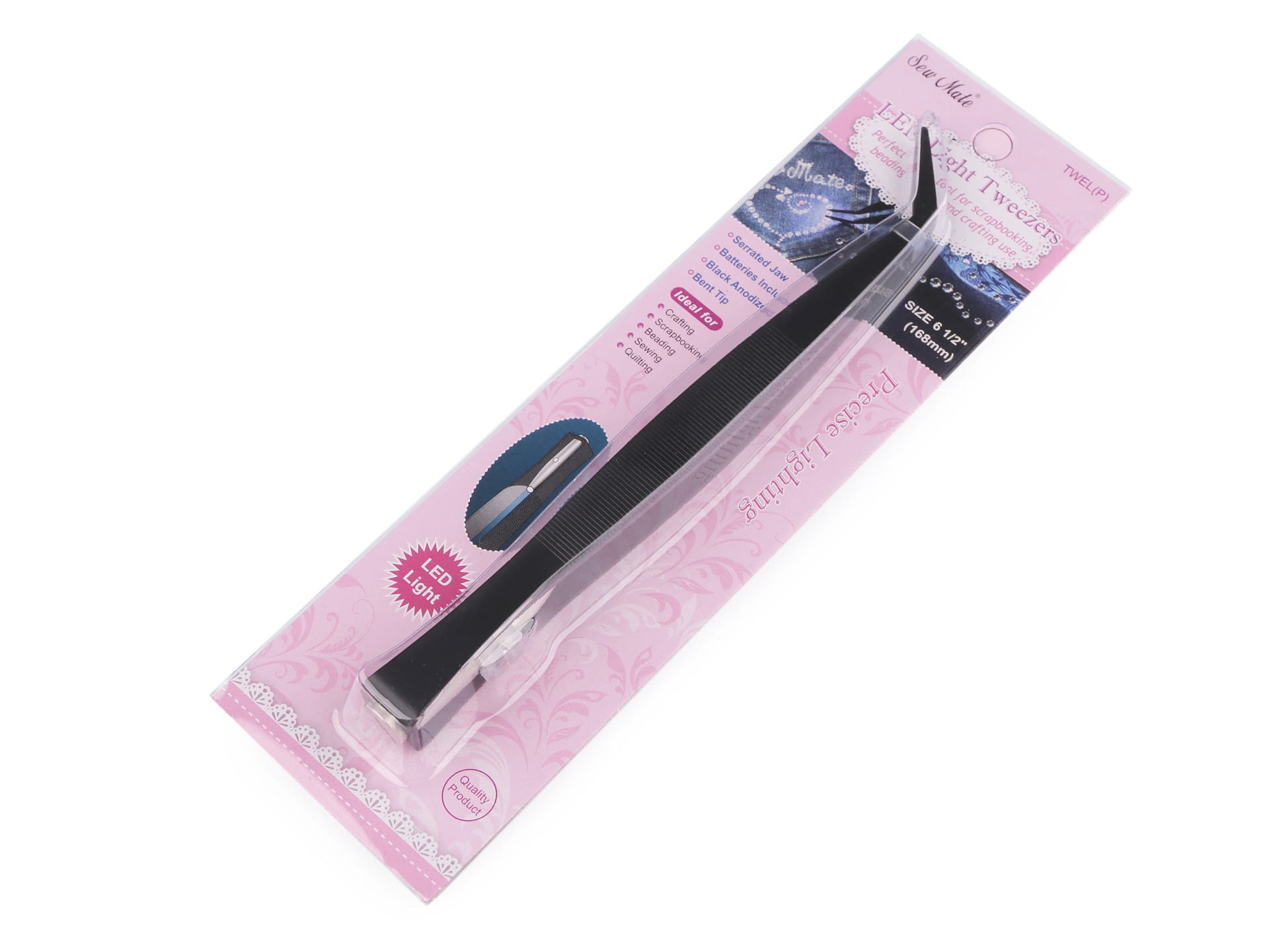 Pęseta krawiecka metalowa z LED światełkiem