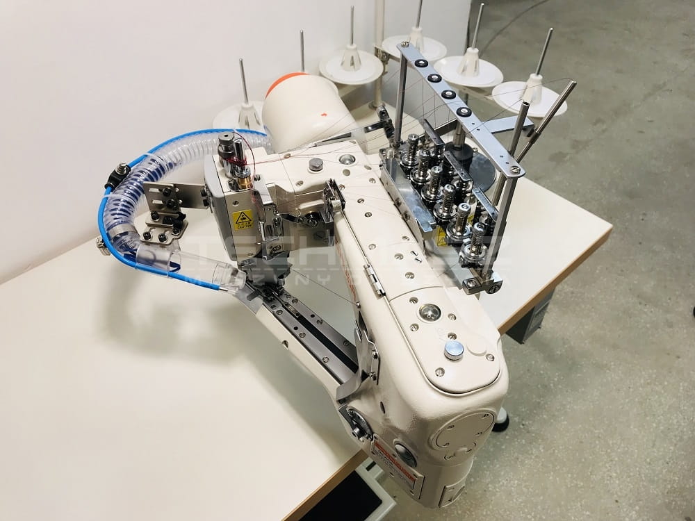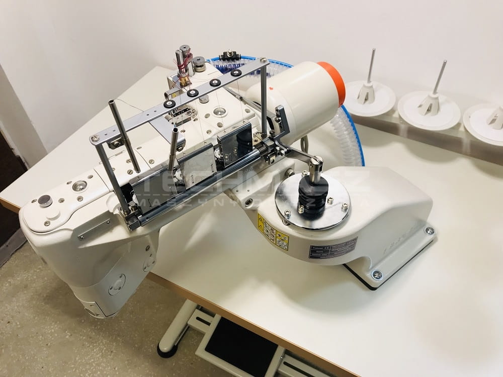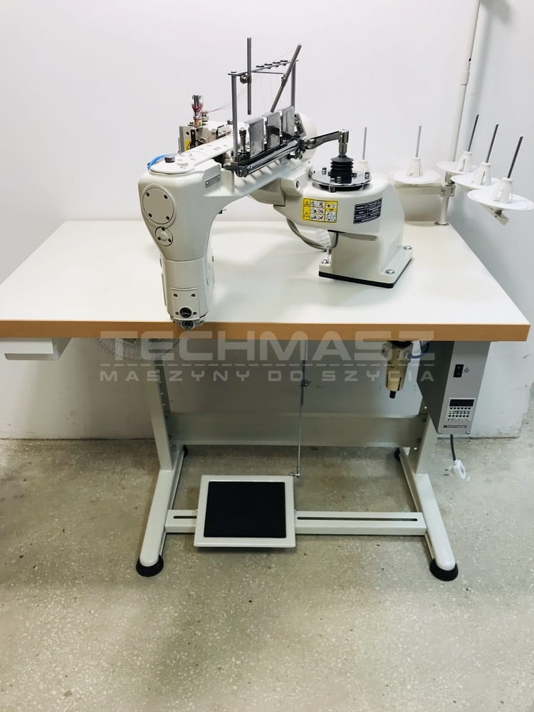 Przeznaczona do elastycznego łączenia materiałów dzianych szwem płaskim, posiada noż poziomy odkrawający nadmiar materiału (dolnej i górnej warstwy), automatyczne podnoszenie stopki wbudowane w korpus maszyny, odsysanie resztek materiału.