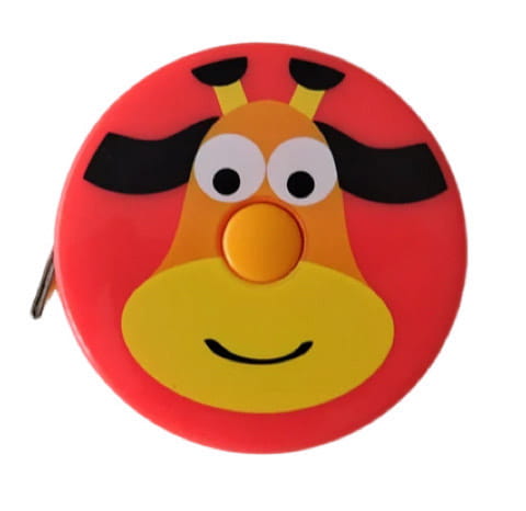 To obustronna miarka o długości 150 cm/60 cali, szerokość taśmy 8 mm. Zwija się po naciśnięciu noska. Miarka stworzona z myślą o dzieciach, ŻYRAFA