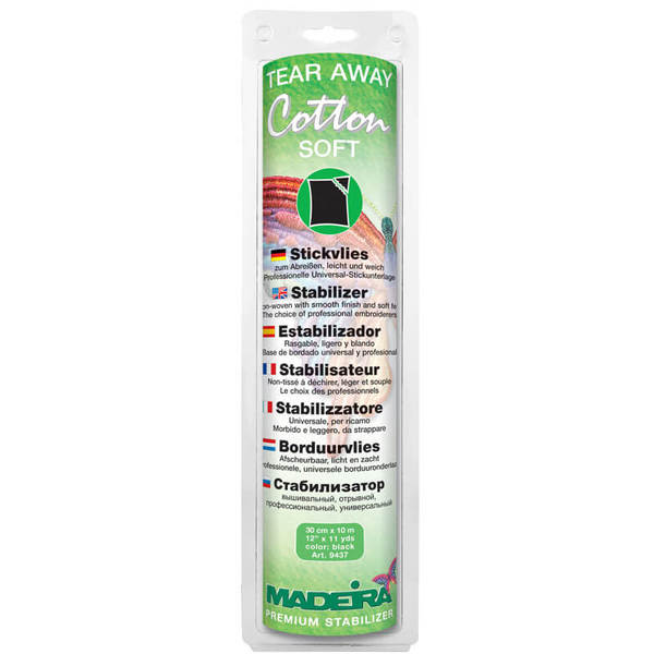 Flizelina hafciarska Madeira Cotton Soft - stabilizator wydzierany (wydzieralny), czarny (30 cm x 10 m)