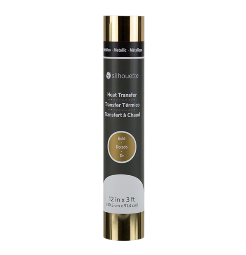 Złota metaliczna folia flex do naprasowanek firmy Silhouette o szerokości 30,5cm idealnie sprawdzi się do wycinania jej za pomocą ploterów tnących. Dzięki niej stworzysz wyjątkowe koszulki, T-shirty czy torby. Materiał nie wymaga korzystania z dodatkowej folii transferowej. Pamiętaj aby wycinać go w odbiciu lustrzanym.