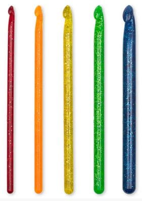 Zestaw zawiera pięć szydełek, każde o innym rozmiarze: od 5.0 mm do 10 mm. Idealne dla fanów szydełkowania, zarówno tych młodszych, jak i starszych. Szydełka wykonane są z dobrej jakości tworzywa, ich powierzchnia jest gładka, co sprzyja płynnemu przesuwaniu włóczki. Wewnątrz szydełek znajdują się brokatowe drobinki nadające im błysku. Każde z szydełek ma długość 18 cm. W komplecie znajduje się 5 szydełek