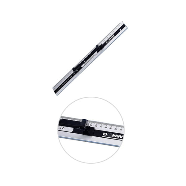 Profesjonalny liniał aluminiowy z uchwytem i gumowymi podkładkami, zapobiegającymi przesuwaniu.