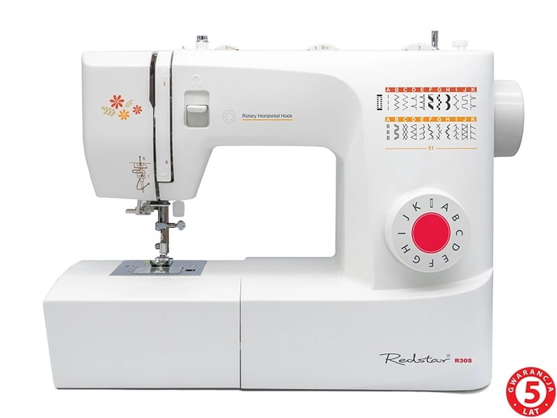 Maszyna do szycia Redstar R30S posiada 23 rodzaje ściegów. Wśród nich znajdziemy automatyczne obszywanie dziurek na wymiar guzika oraz ściegi do podszywania ślepego. Do wyboru mamy także szeroką gamę ściegów owerlokowych i specjalistycznych do różnych typów materiałów, w tym elastycznych. Maszyna do szycia Redstar R30S jest wyposażona w nowoczesny chwytacz rotacyjny i wykonana jest z metalowych podzespołów dzięki temu oznacza się wysoką jakością wykonania i długoletnią „żywotnością”. Wzbogacono ją o oświetlenie LED i automat do nawlekania igły. Dodatkowy stolik, który znajduje się w wyposażeniu zwiększa komfort pracy oraz powierzchnię szycia.