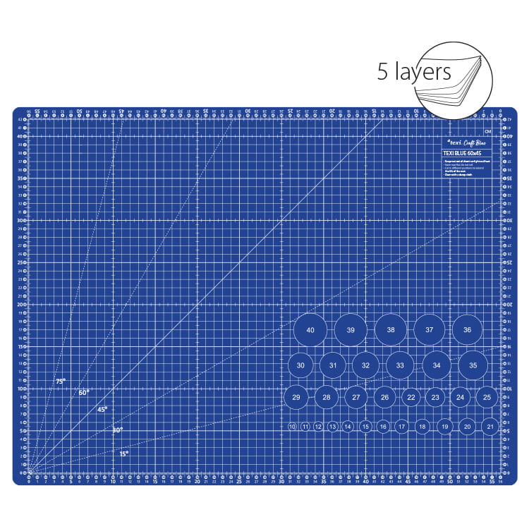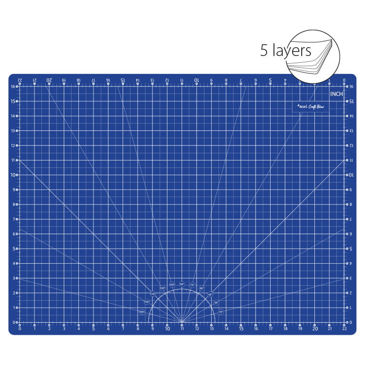 5 - warstwowa mata podkładowa z podziałką centymetry / cale w kolorze niebieskim.