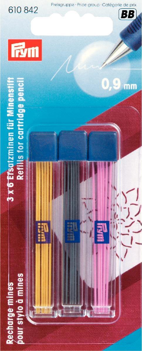 Zapasowe spieralne grafity w trzech kolorach do rysowania na tkaninach do ołówka automatycznego 610-840. Opakowanie zawiera 3 pudełka po 6 grafitów w kolorze.