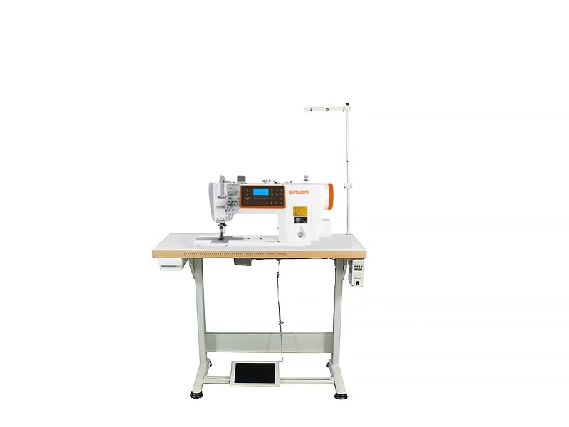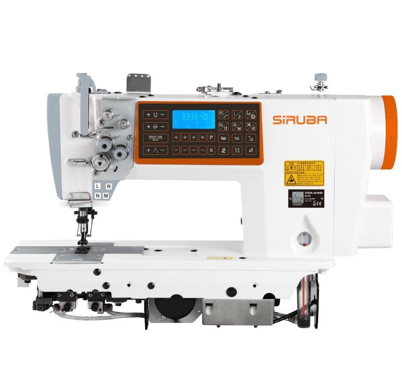 Stębnówka SIRUBA DT828L-75-064M/C 2-igłowa z podwójnym transportem (igłowo-ząbkowym), wyłączanymi igłami i funkcjami automatycznymi, z silnikiem w głowicy.