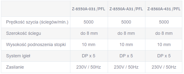 - Z-8550A-A31/PFL – automatyczne podnoszenie stopki i ryglowanie - cena: u sprzedawcy