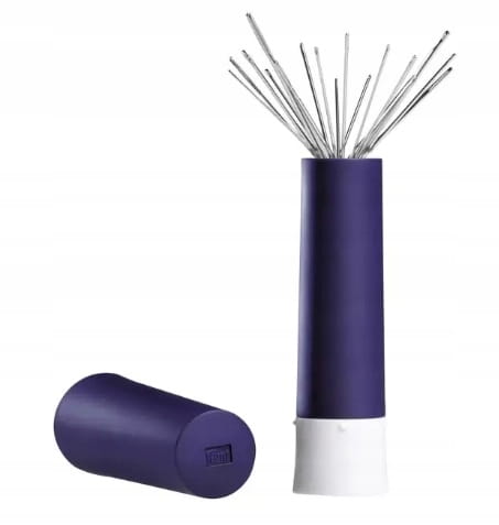 Wykręcany pojemnik z magnesem na stalowe igły i szpilki (igły nie są dołączone). Dzięki zamontowaniu magnesu igły są zabezpieczone tak w zamkniętym jak i otwartym i wykręconym pojemniku.